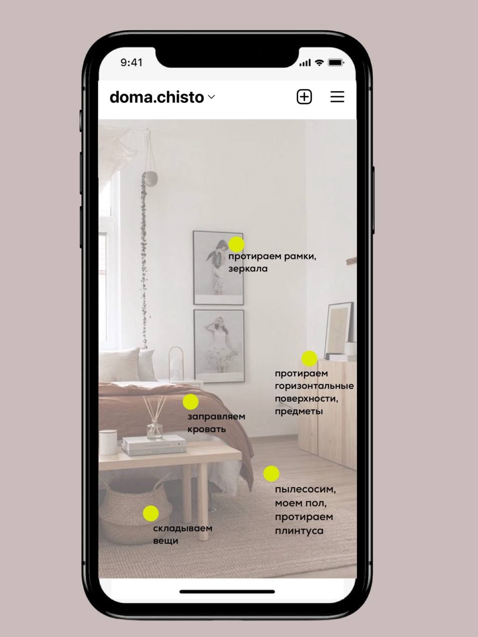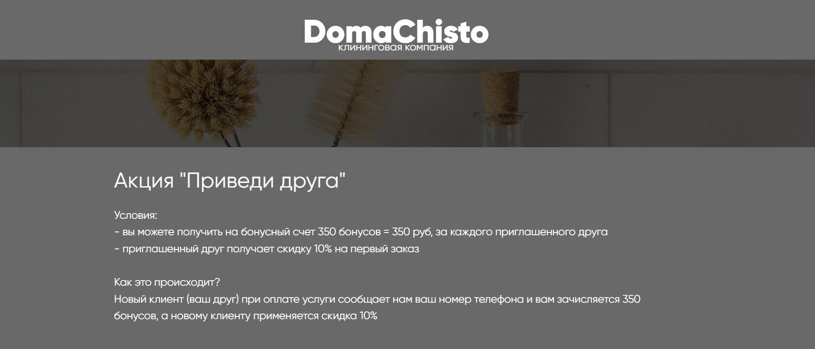 в рамках контент стратегии прежде всего стояла задача создать "не шумный" информативный контент без ярких кричащих заголовков, который максимально облегчит процесс заказа клининга, а также нам хотелось показать, что клининг - это не про грязь, и что уборка тоже может быть эстетичной