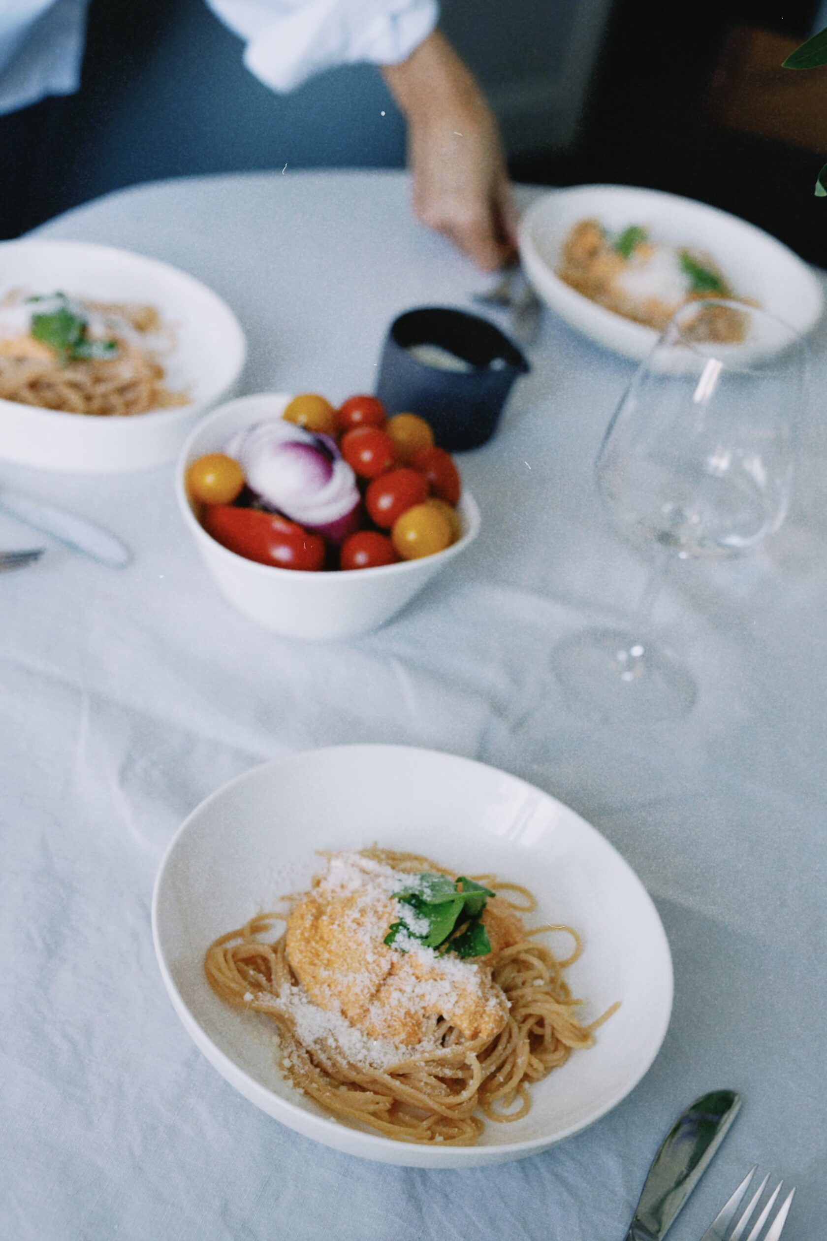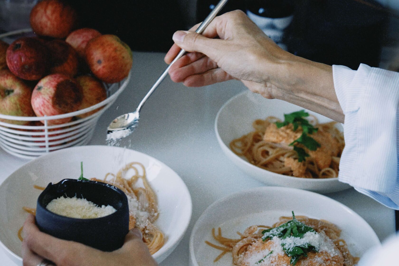 Варим пасту, я взяла из красной чечевицы, 7 минут, сливаем воду, добавляем готовую смесь овощей и сыра, и немного тертого пармезана